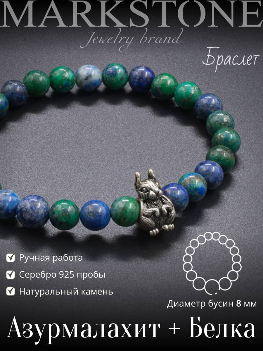 Закажите Браслет из натурального Азурмалахита с серебряной Белкой прямо сейчас — добавьте в свою коллекцию украшение с характером! Пусть оно приносит Вам гармонию, удачу и напоминает о мудрости природы.