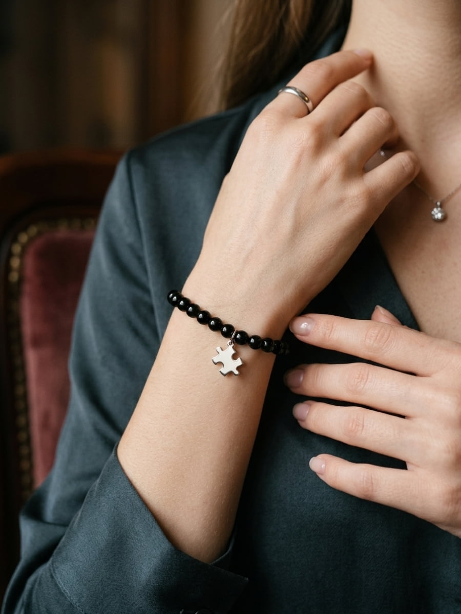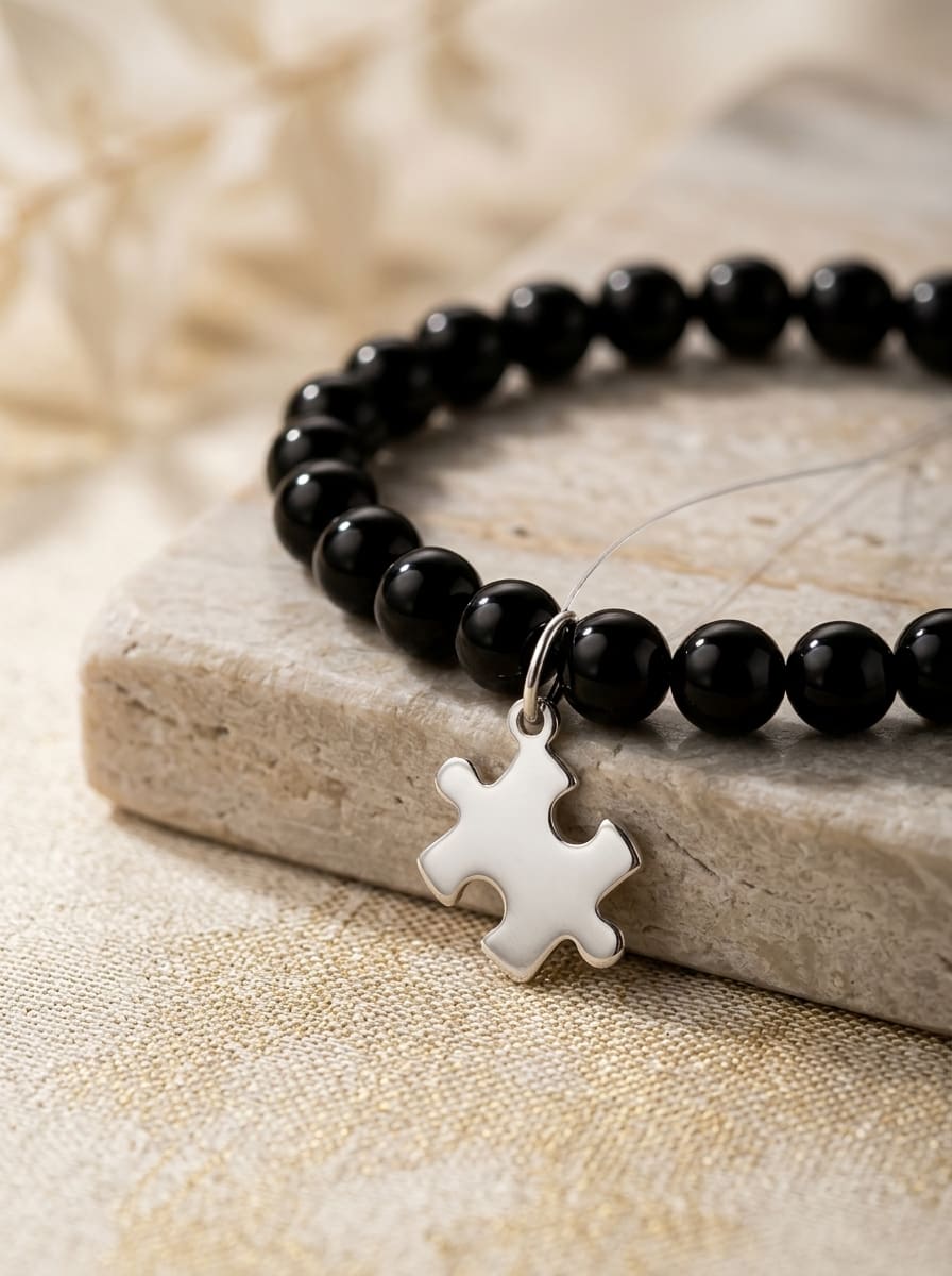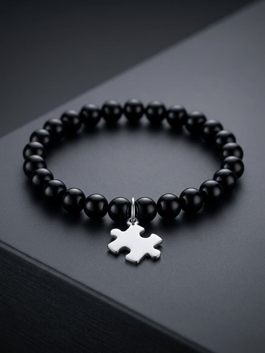 Закажите браслет из Чёрного агата с подвеской «Пазлик» прямо сейчас — пусть он станет Вашим талисманом силы и стиля, напоминанием о внутренней глубине и источником уверенности. Носите природную мощь и современное изящество каждый день!