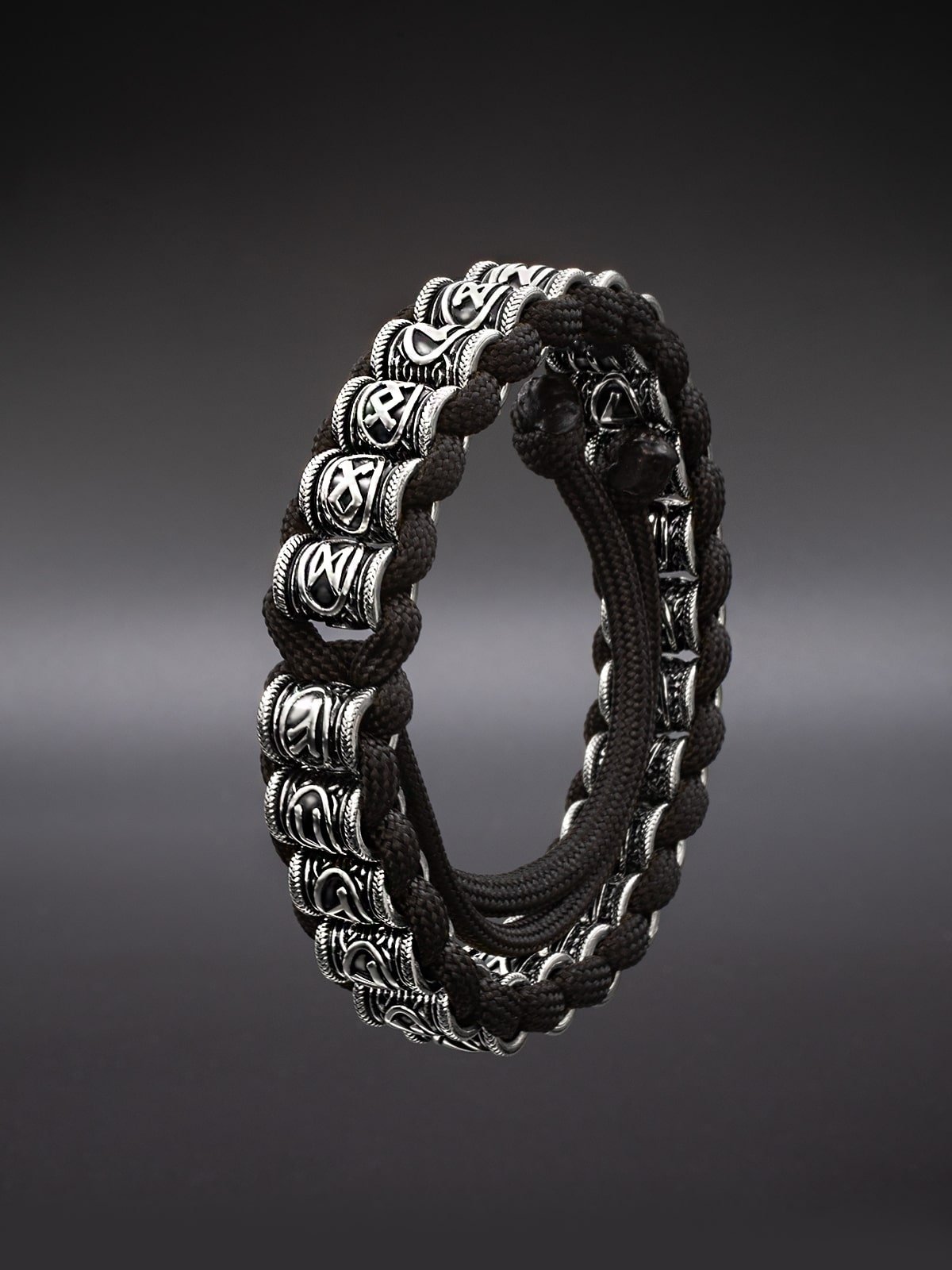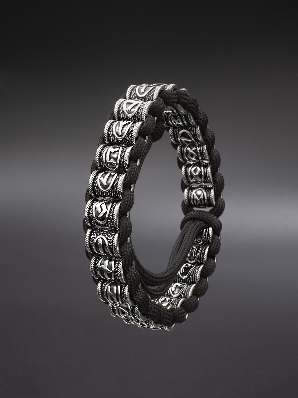 Браслет «Скандинавский футарк» на завязках из паракорда