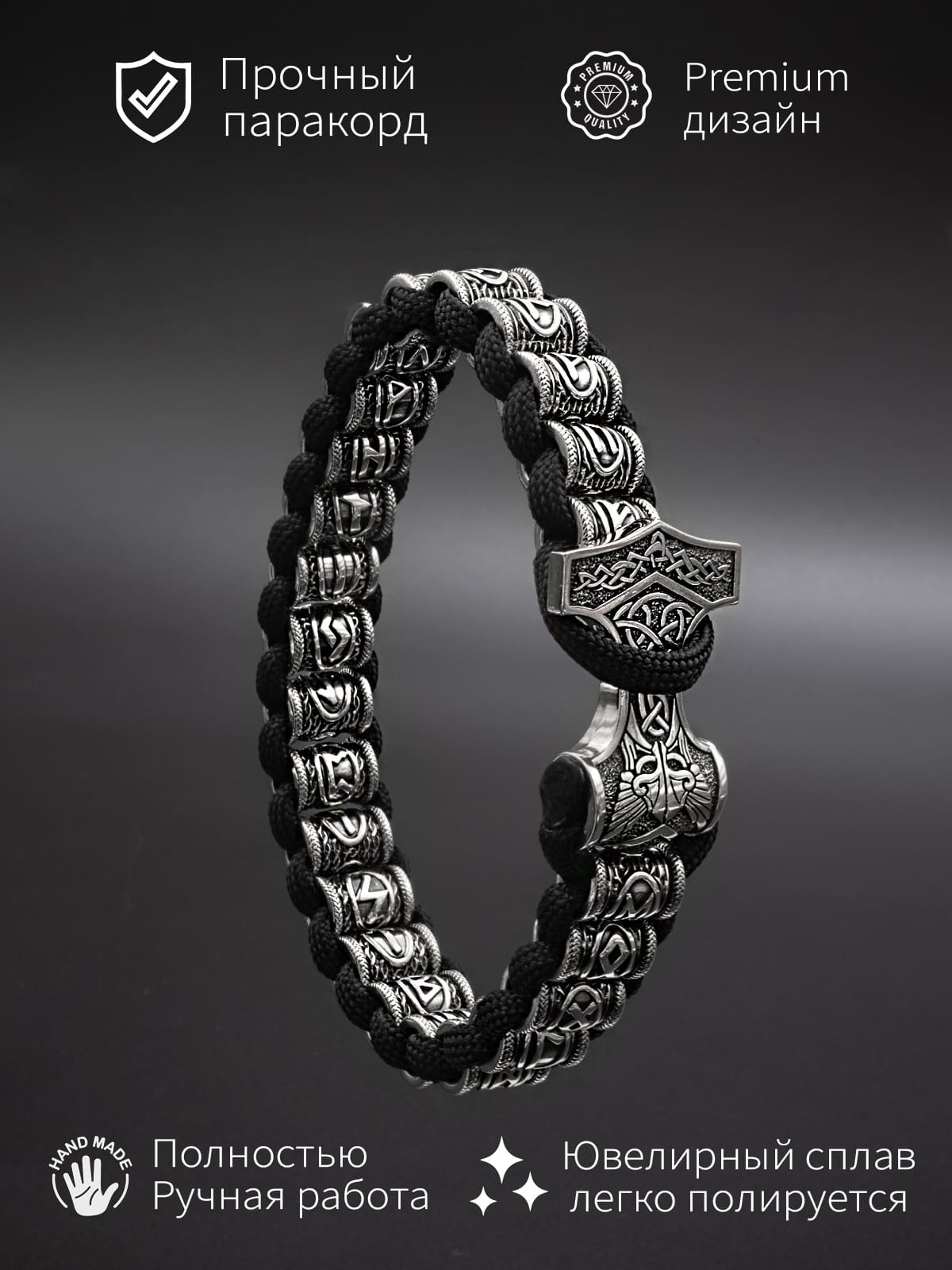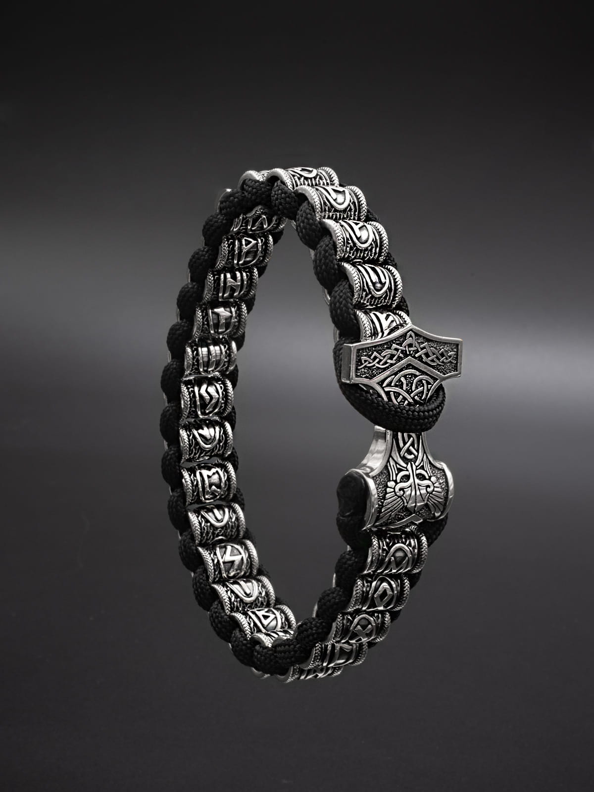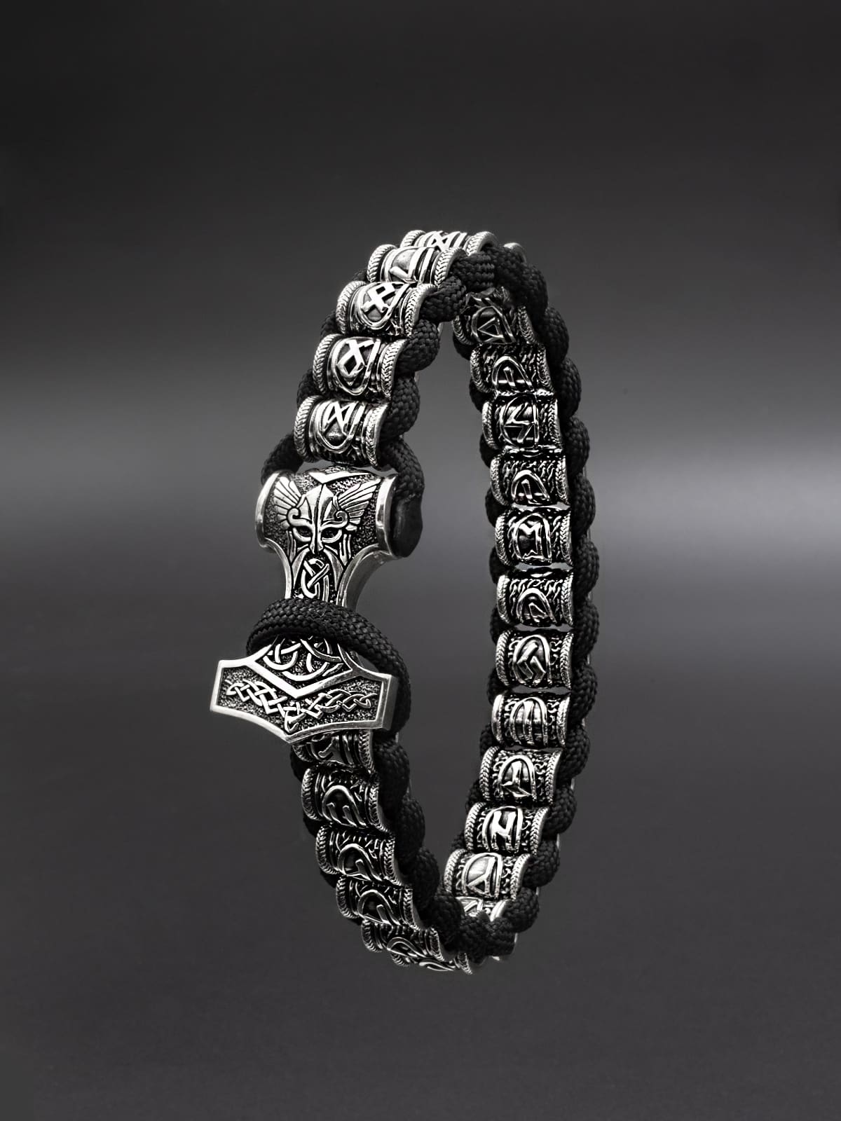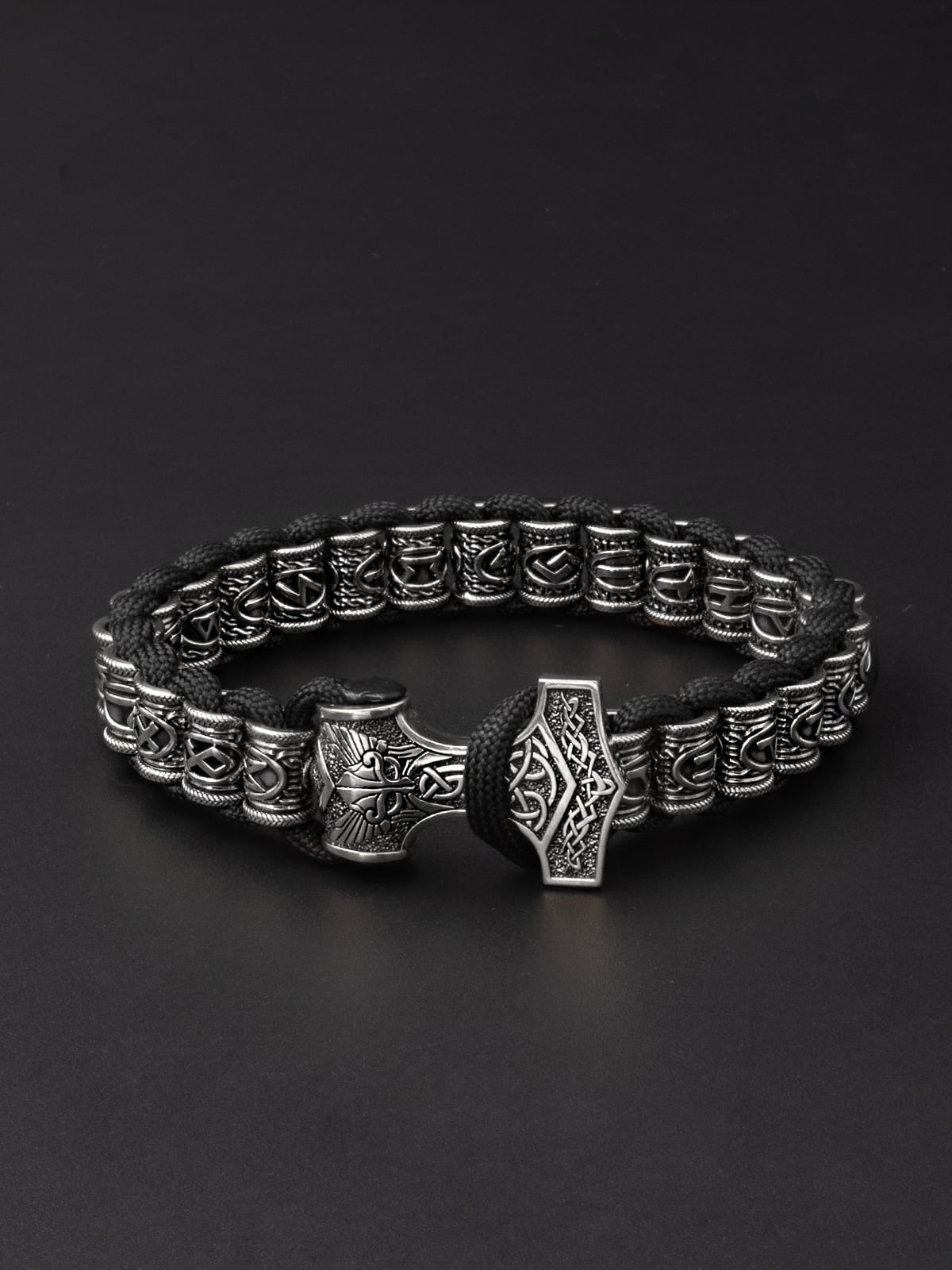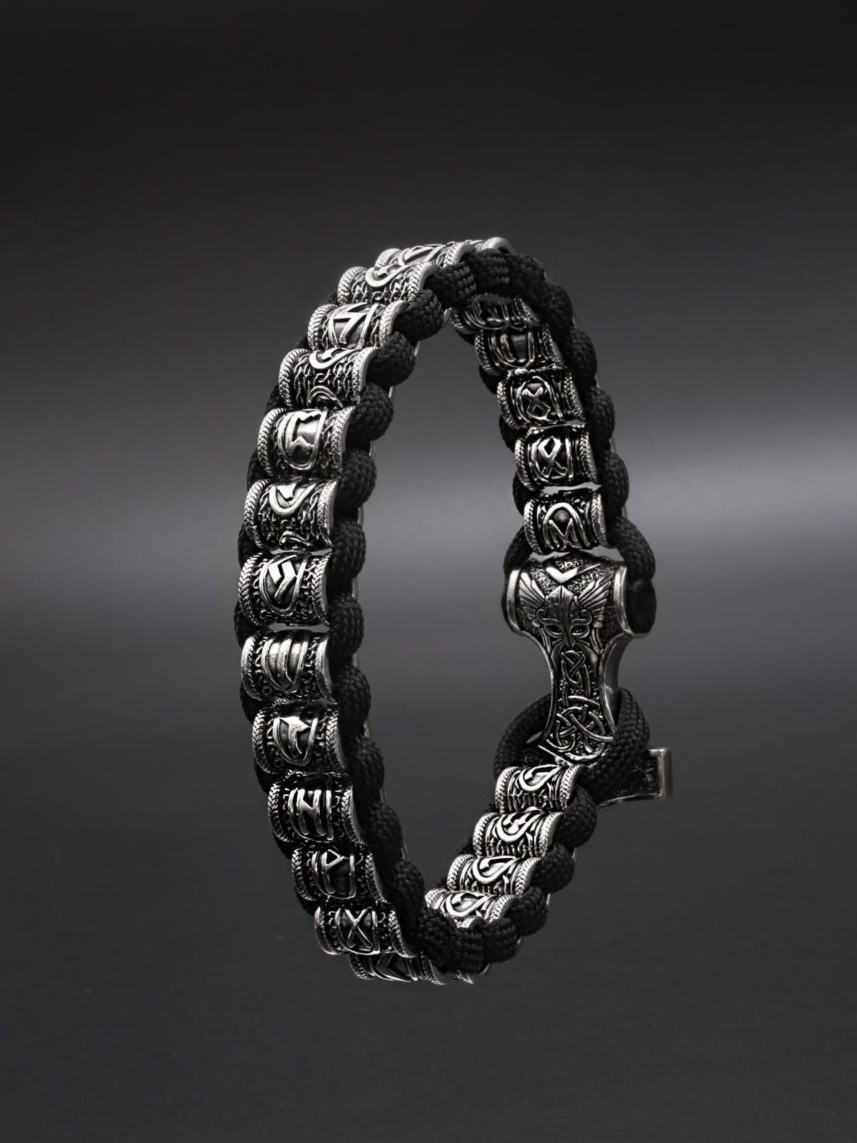 Браслет «Скандинавский футарк» с застёжкой «Молот Тора»