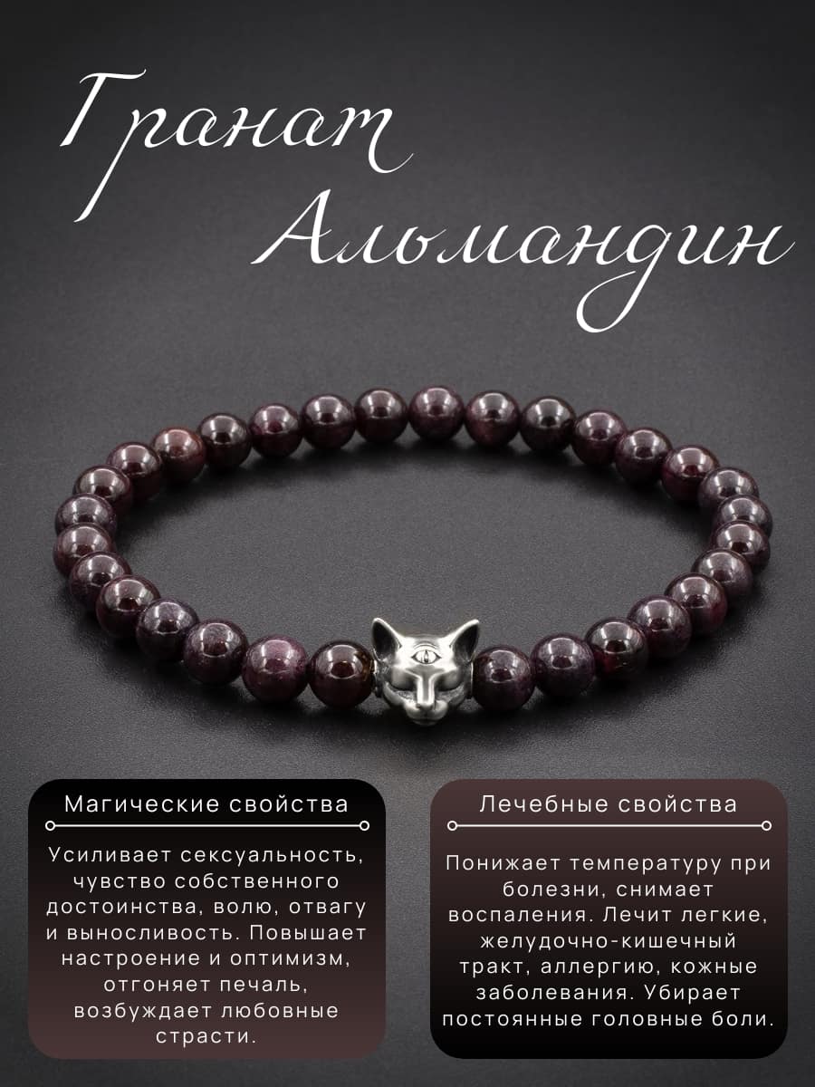 Не упустите возможность приобрести уникальный аксессуар, который подчеркнёт Вашу индивидуальность и превратит обычный наряд в настоящий шедевр. Закажите женский браслет из натурального камня Гранат Альмандин с шармом Мистическая Кошка из серебра 925 пробы прямо сейчас!