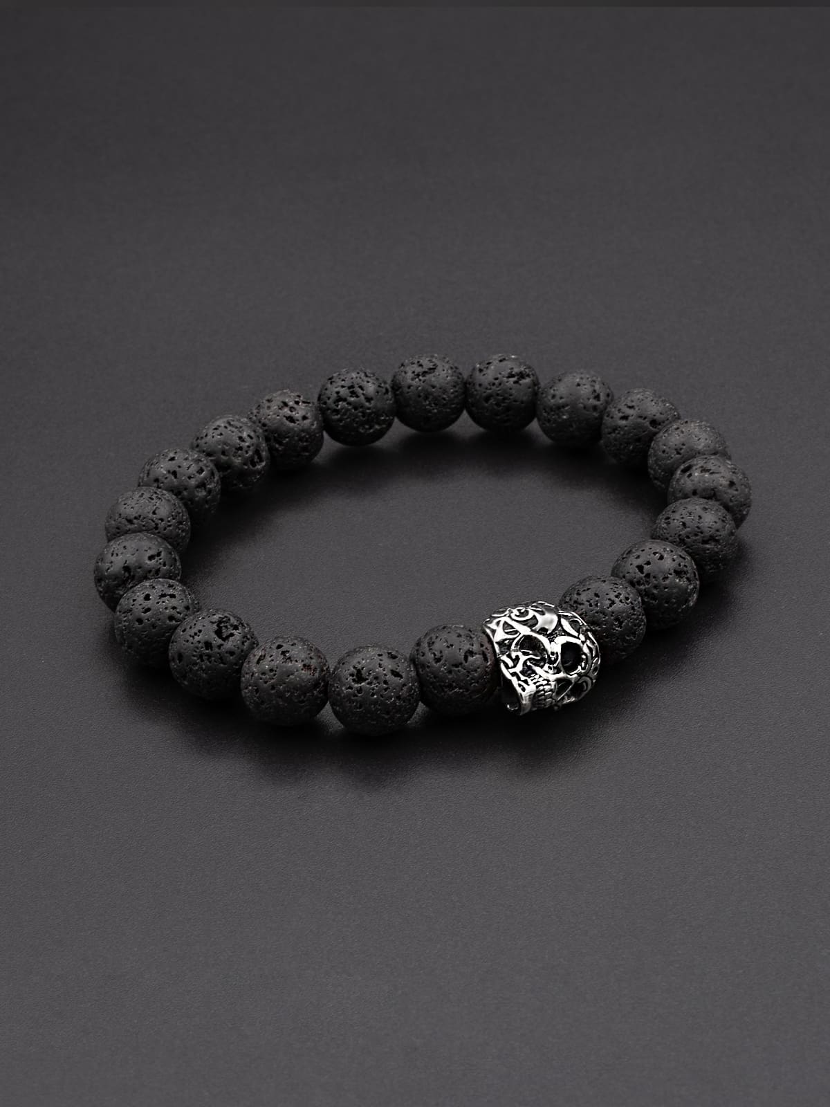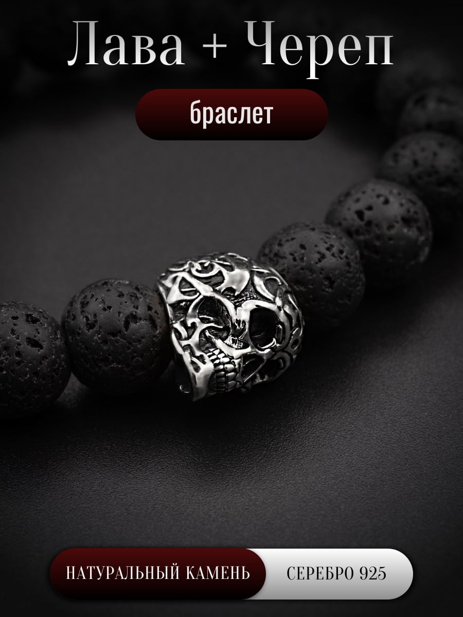 Купить браслет из натурального камня Вулканическая Лава с шармом бусиной Череп из серебра — значит приобрести произведение искусства, которое точно не останется незамеченным.