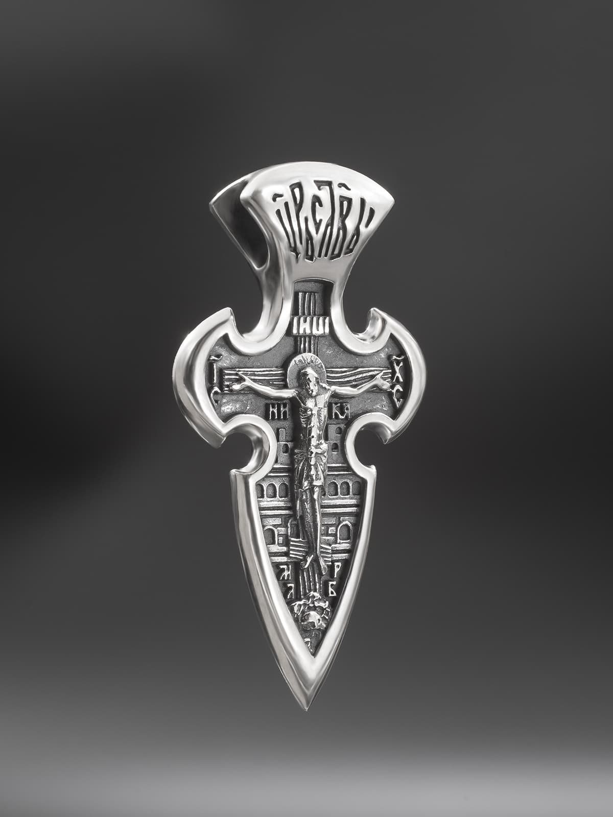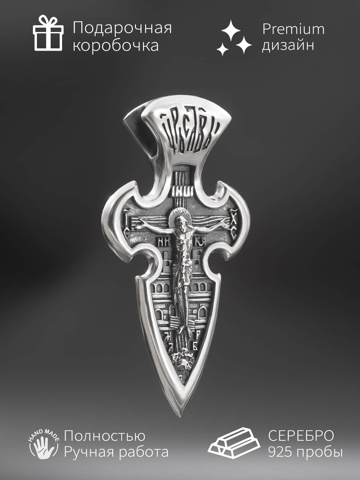Крестик из серебра 925 пробы ручной работы с Иисусом Христом и Архангелом Михаилом. Православное ювелирное украшение - отличный подарок родным и близким, друзьям и коллегам или для себя. Оберег талисман с необычным дизайном.
