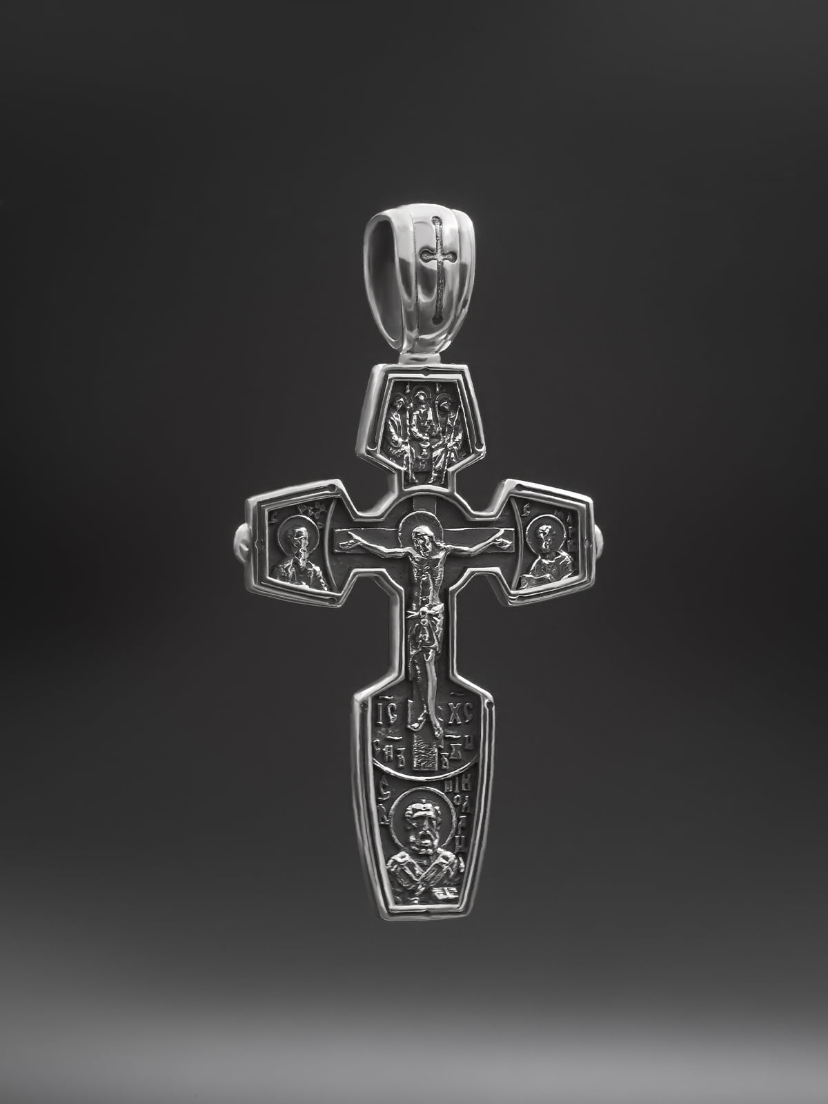 Модель 06228: Самый большой крестик в нашем ассортименте. Лики святых: Христос, Святой Тихон, Святой Григорий, Святой Дионисий и Николай Чудотворец. На другой стороне крестика, молитва Отче наш.