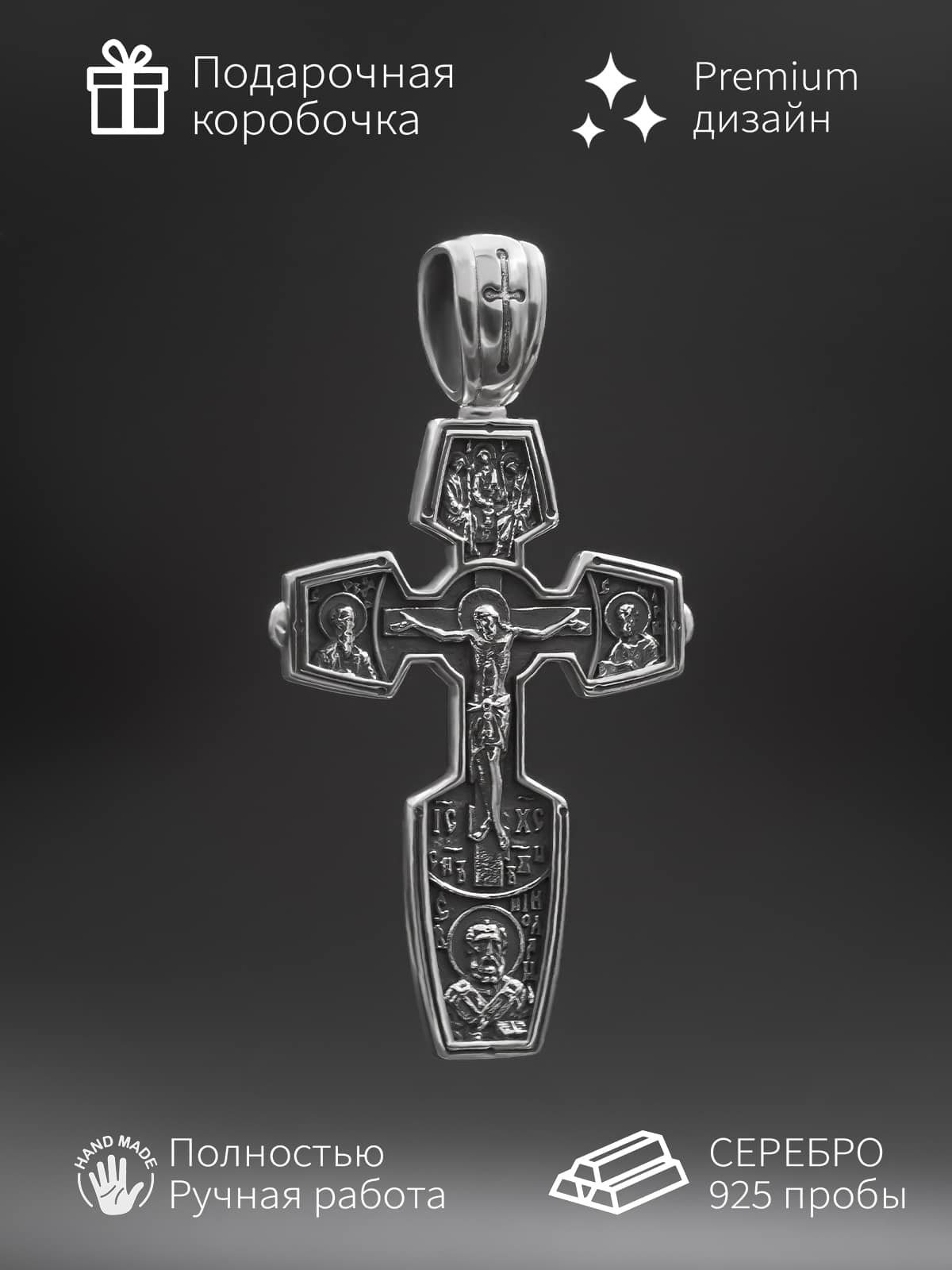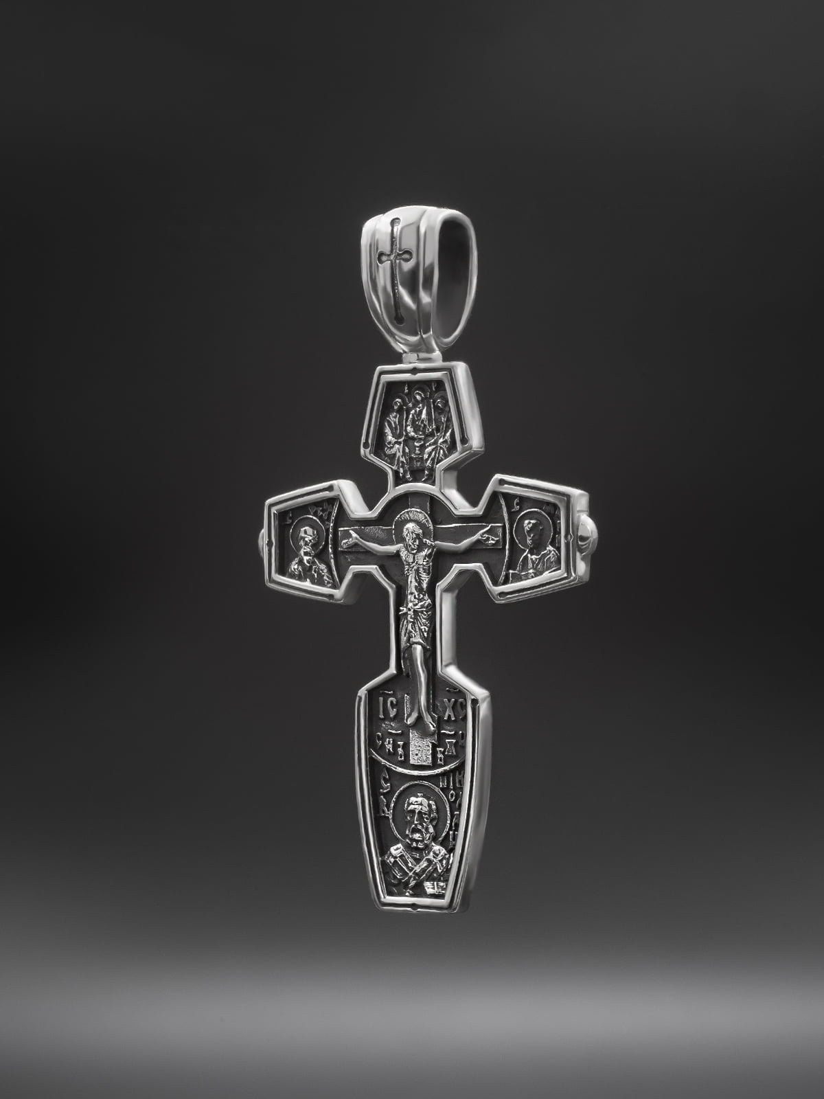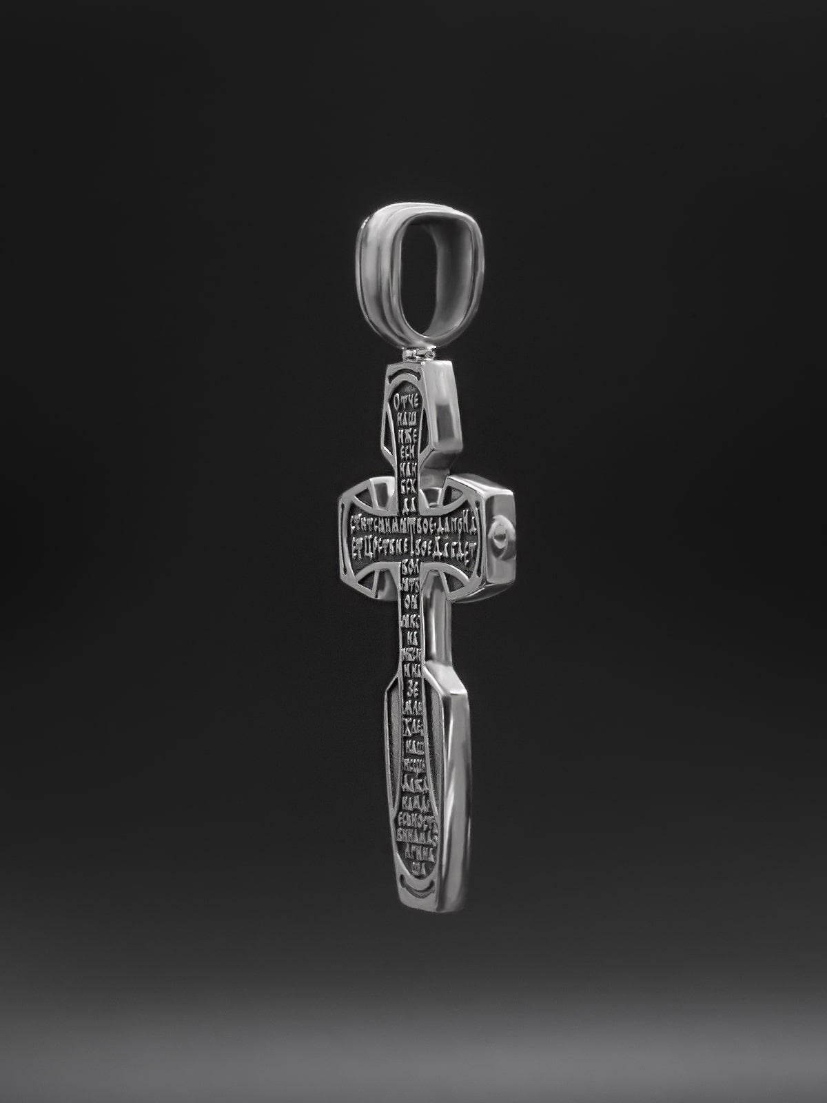 Крестик из серебра 925 пробы ручной работы с Иисусом Христом. Православное ювелирное украшение - отличный подарок родным и близким людям или для себя. Оберег талисман в виде кулона-подвеса с необычным дизайном и молитвой Отче Наш.