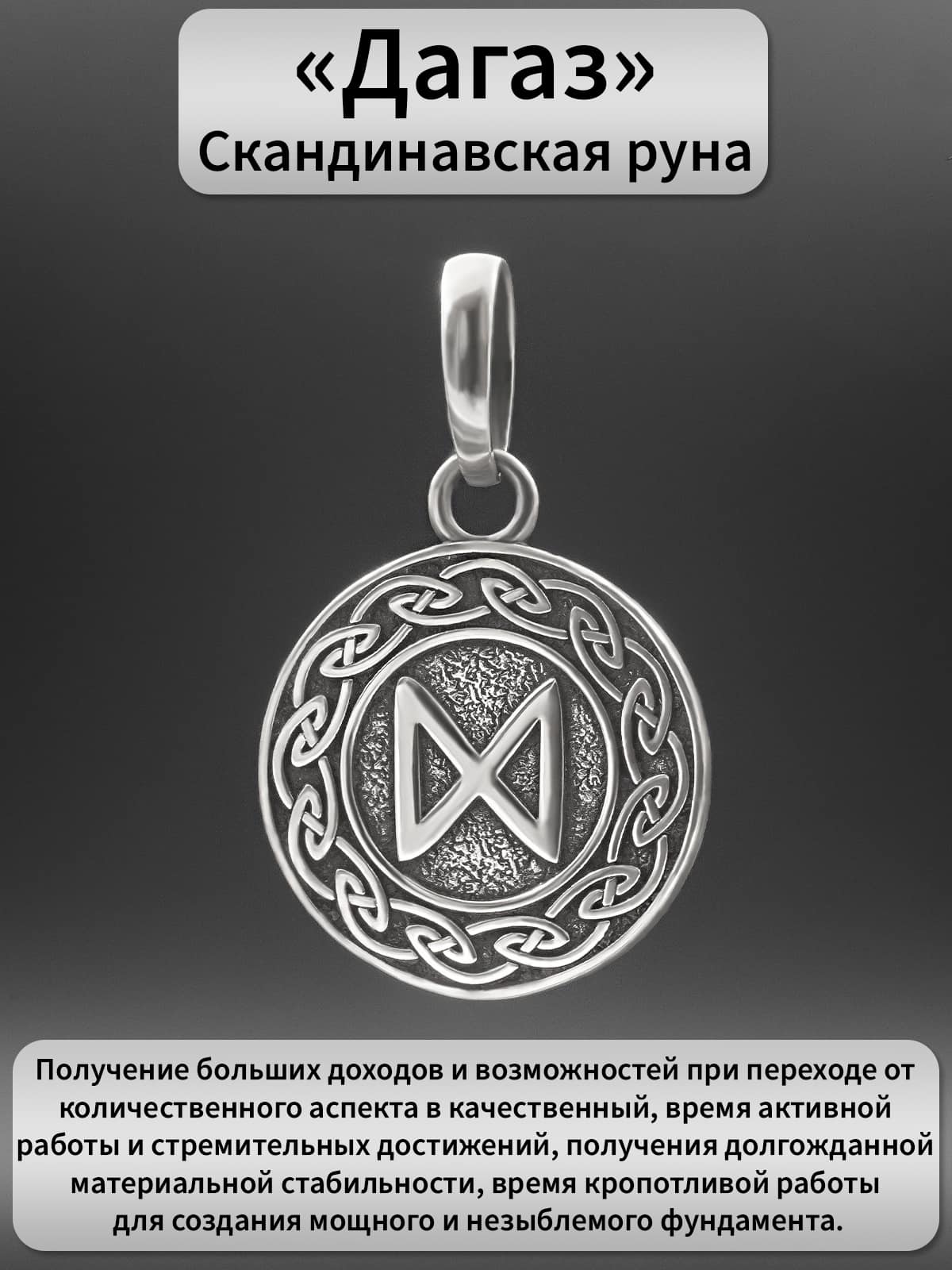 Купить кулон-подвес руна Дагаз из серебра 925 пробы - значит обрести стильный и красивый аксессуар, который станет не только украшением, но и источником положительных эмоций и энергии. Мы уверены, что вы будете довольны своей покупкой и она будет служить вам долго и надежно. Закажите кулон-подвес прямо сейчас и получите возможность украсить свой образ вместе с красивой символикой!
