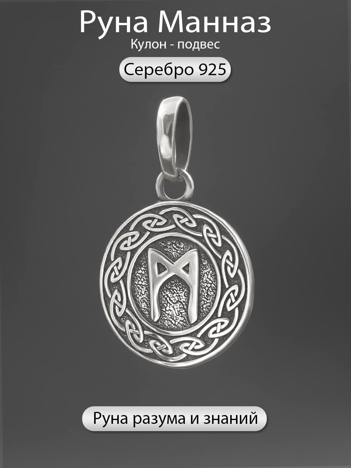 Заказывайте кулон-подвес руна Манназ из серебра 925 пробы ручной работы прямо сейчас!