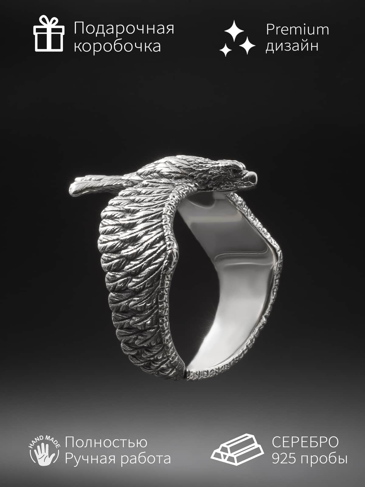 Кольцо «Орёл: крылья силы» из серебра — мощь и величие в ювелирном исполнении