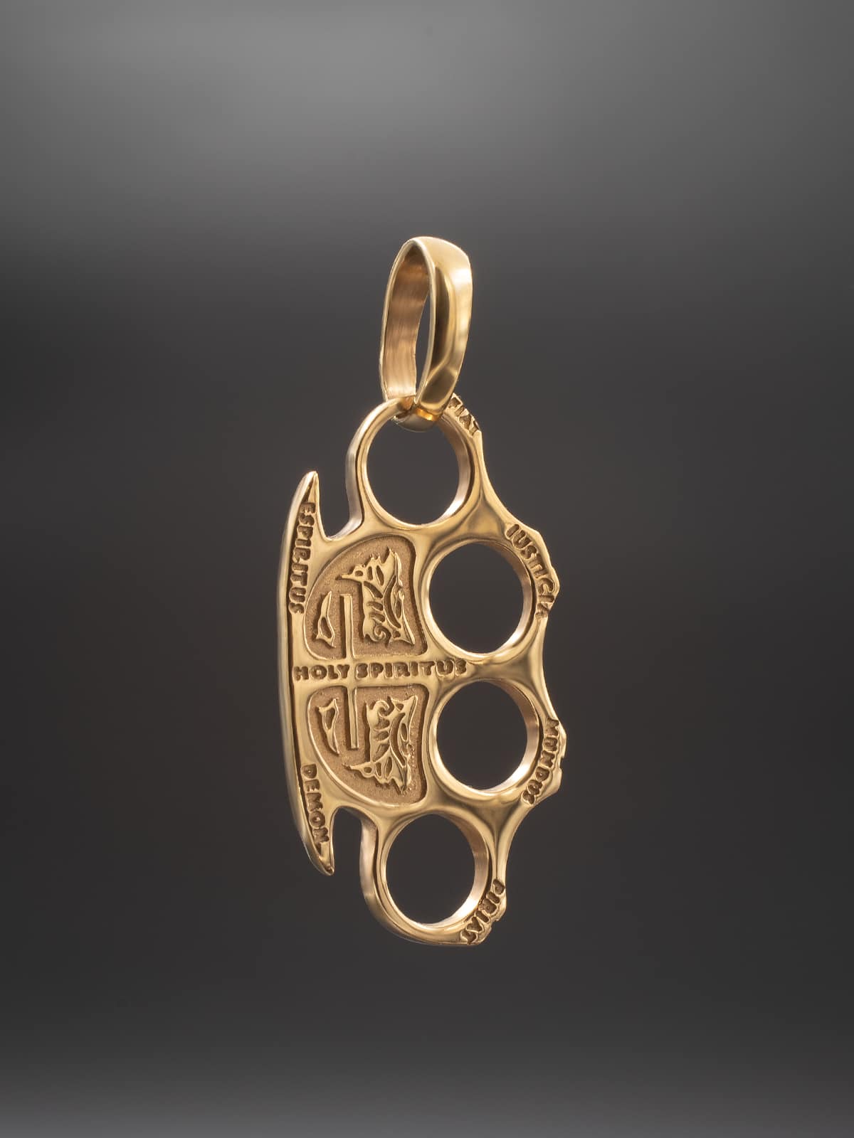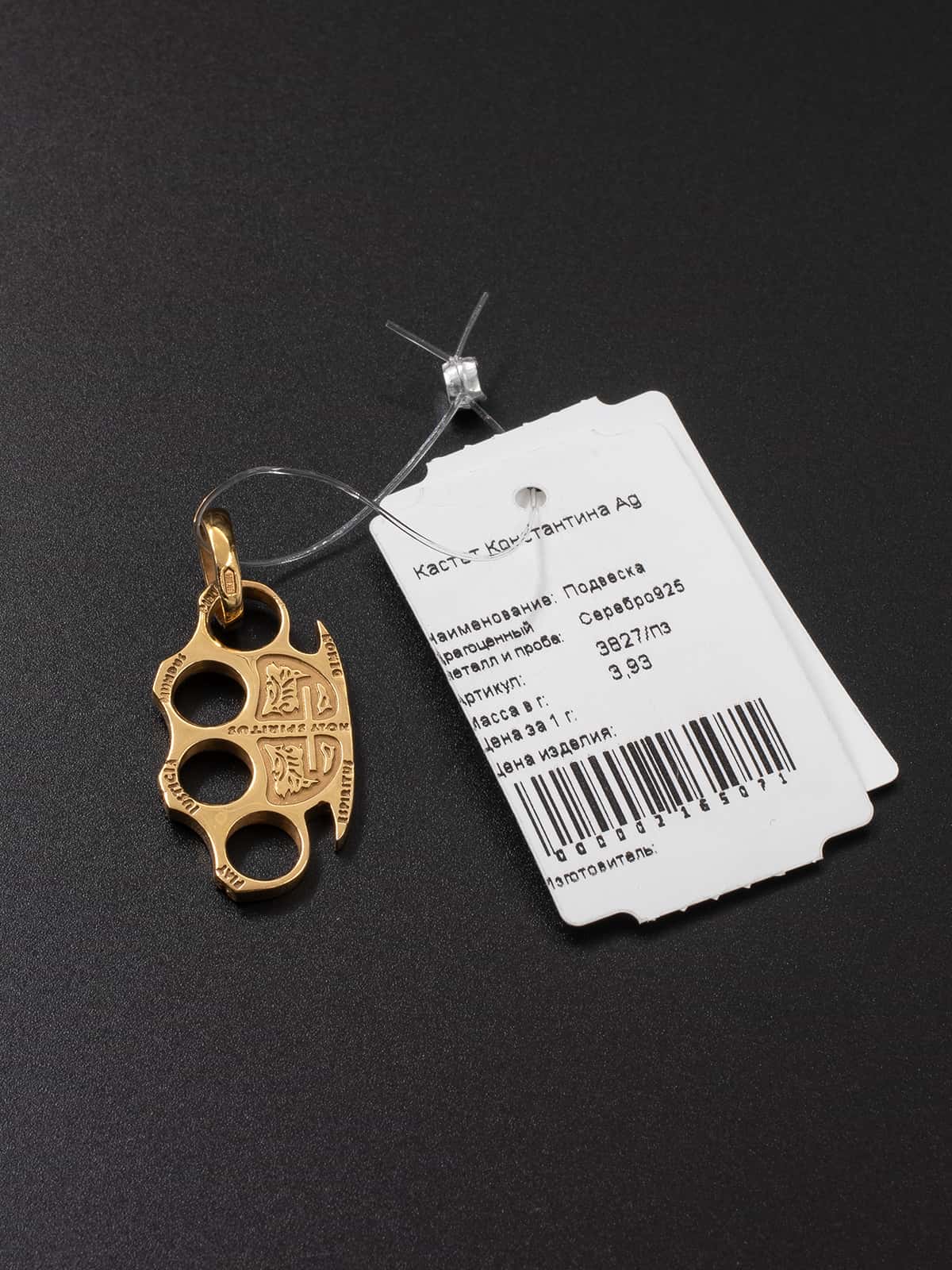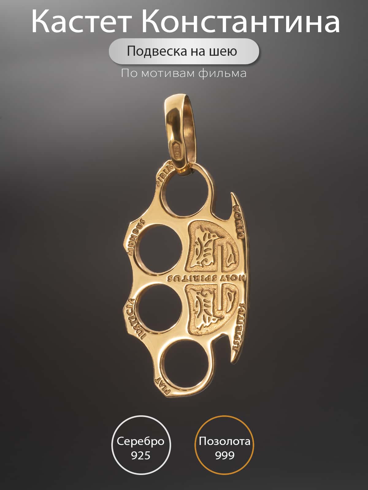 Кулон-подвес кастет Константина в позолоте – это уникальное украшение, которое привлекает внимание своим необычным дизайном и стильным исполнением. Он вдохновлен главным героем фильма, который изображен на этом подвесе – Константином, сильным и уверенным в себе человеком, который всегда готов защитить своих близких.