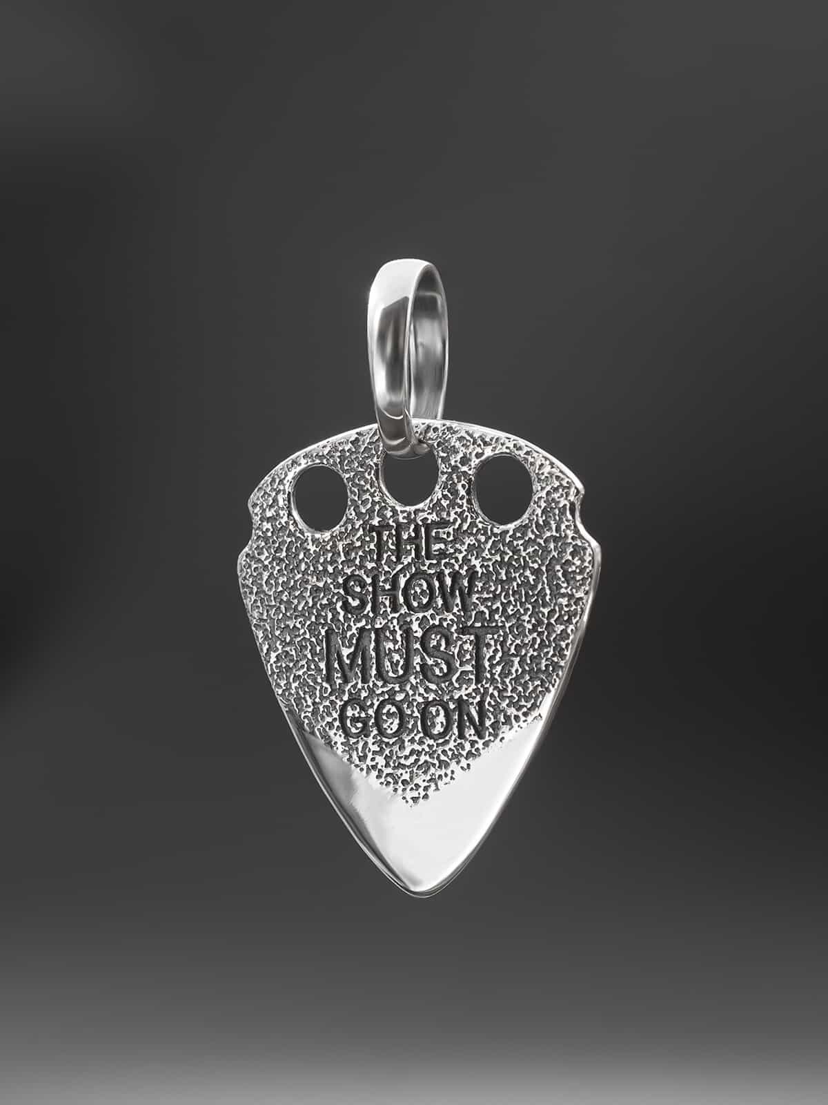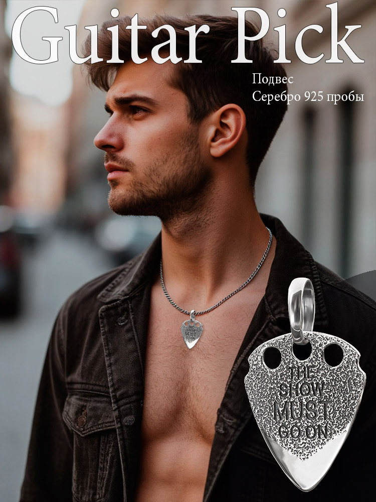 Известно, что медиатор - это аксессуар для игры на гитаре. А мы придумали ювелирное украшение в виде подвески на шею - "Медиатор", со знаменитой строчкой из песни группы QUEEN. "The Show Must Go On" в переводе означает: "Шоу должно продолжаться". Это украшение отлично подойдет музыкантам, как мужчинам, так и девушкам, и просто любителям музыки и стильных вещей.