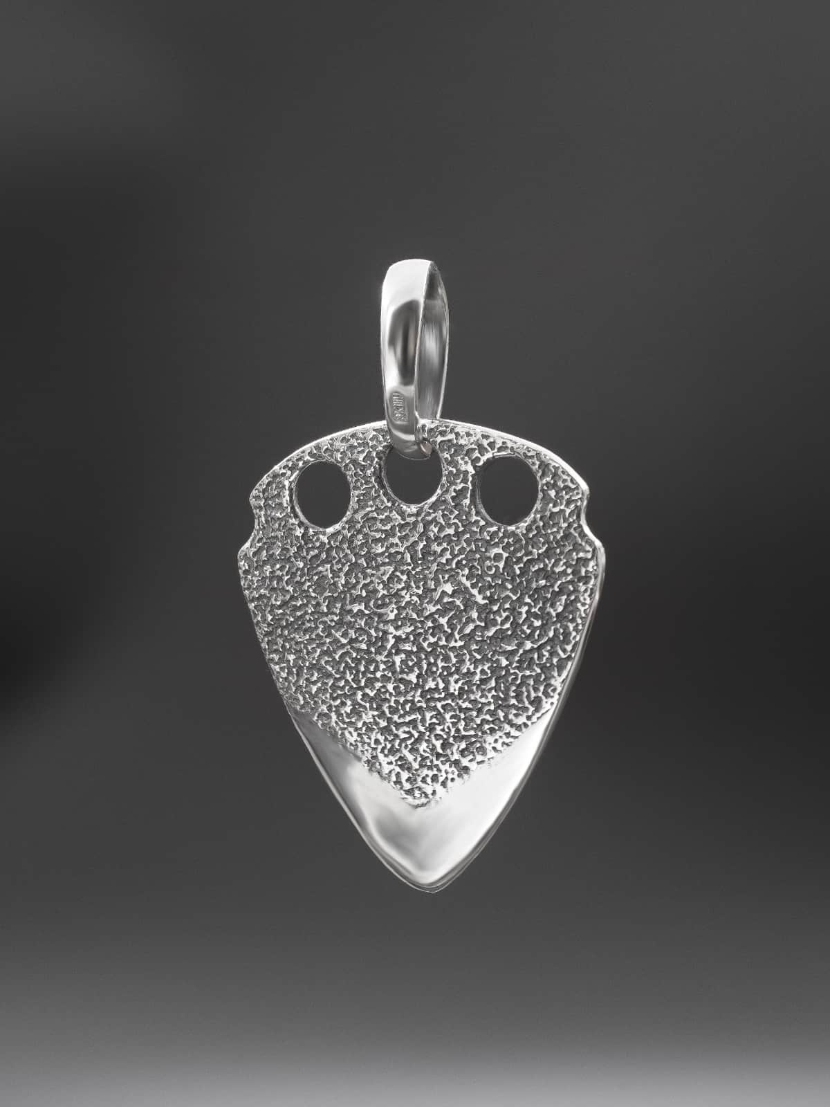 Подвеска на шею "Медиатор" имеет надпись с одной стороны, а с обратной стороны только текстура.