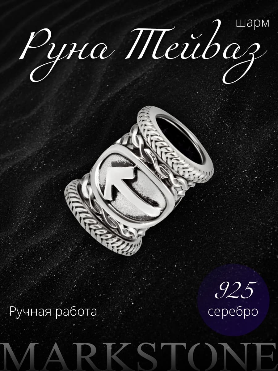 Почувствуйте мощь древних воинов с серебряным шармом, украшенным руной Тейваз. Это украшение — не просто стильный аксессуар, а талисман, воплощающий силу воли, мужество и стремление к победе, вдохновлённый воинскими традициями скандинавов.