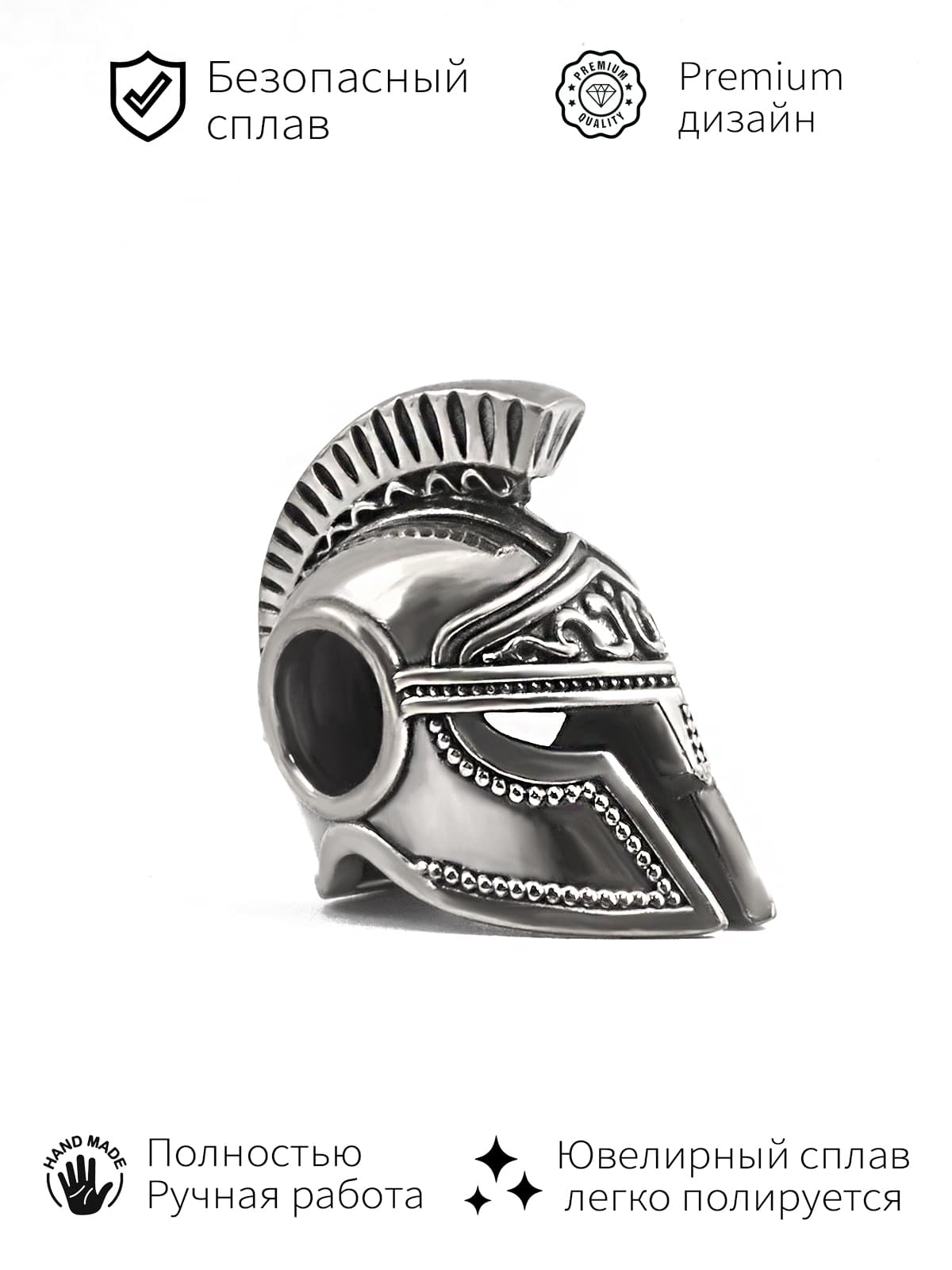 Шарм в виде Шлема Спартанца из серебра 925 пробы — это больше, чем аксессуар. Это напоминание о силе духа, дисциплине и верности своим ценностям. Пусть древний символ вдохновляет Вас на новые свершения и помогает оставаться стойким в любых испытаниях!
