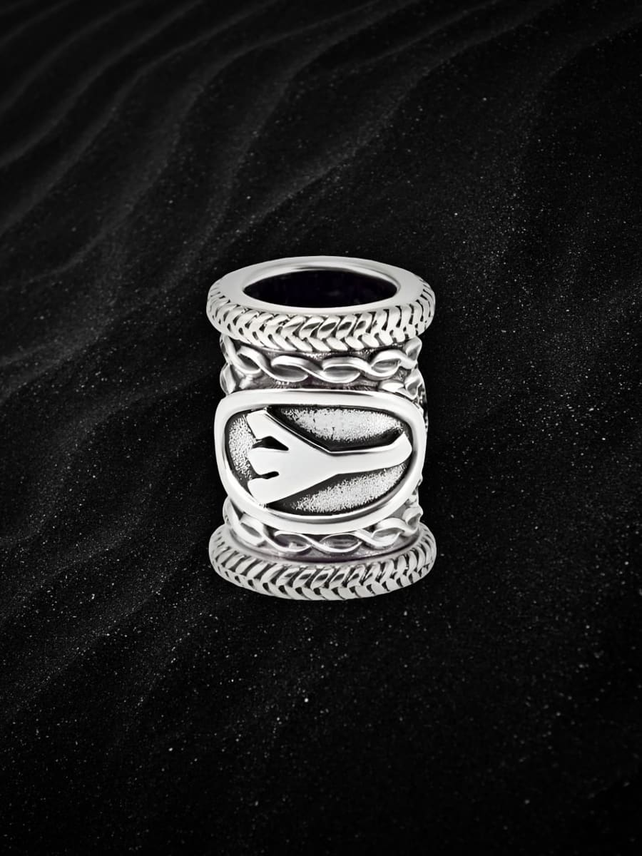 Серебро, из которого выполнен шарм, усиливает энергетику руны. Этот металл издавна связывают с луной, интуицией и очищением — он помогает гармонизировать энергию Альгиз, делая защиту более мягкой и избирательной, отсекая негатив, но пропуская позитивные влияния.