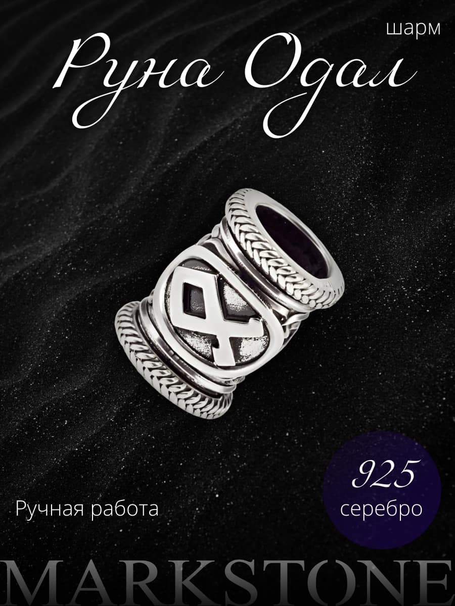 Серебро, из которого выполнен шарм, усиливает энергетику руны. Этот металл издавна связывают с луной, интуицией и очищением — он помогает гармонизировать энергию Одал, смягчая возможные тревоги о будущем и укрепляя связь с прошлым.